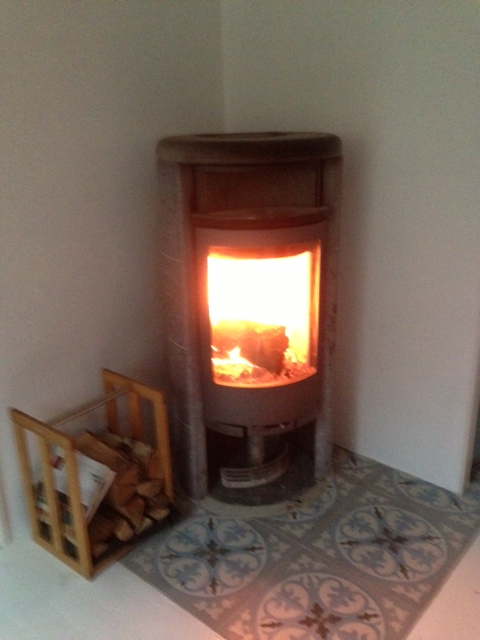 Nu när höstvindarna sveper in och tar alla vackra löv med sig, så tänder jag brasan och mår bra (trots att november står för dörren). Täljstenskaminen i köket fick en ny inramning av nya plattor, vitmålat trägolv och vitputsade väggar. Nu värmer den inte bara härligt, utan är en fröjd att se på också.