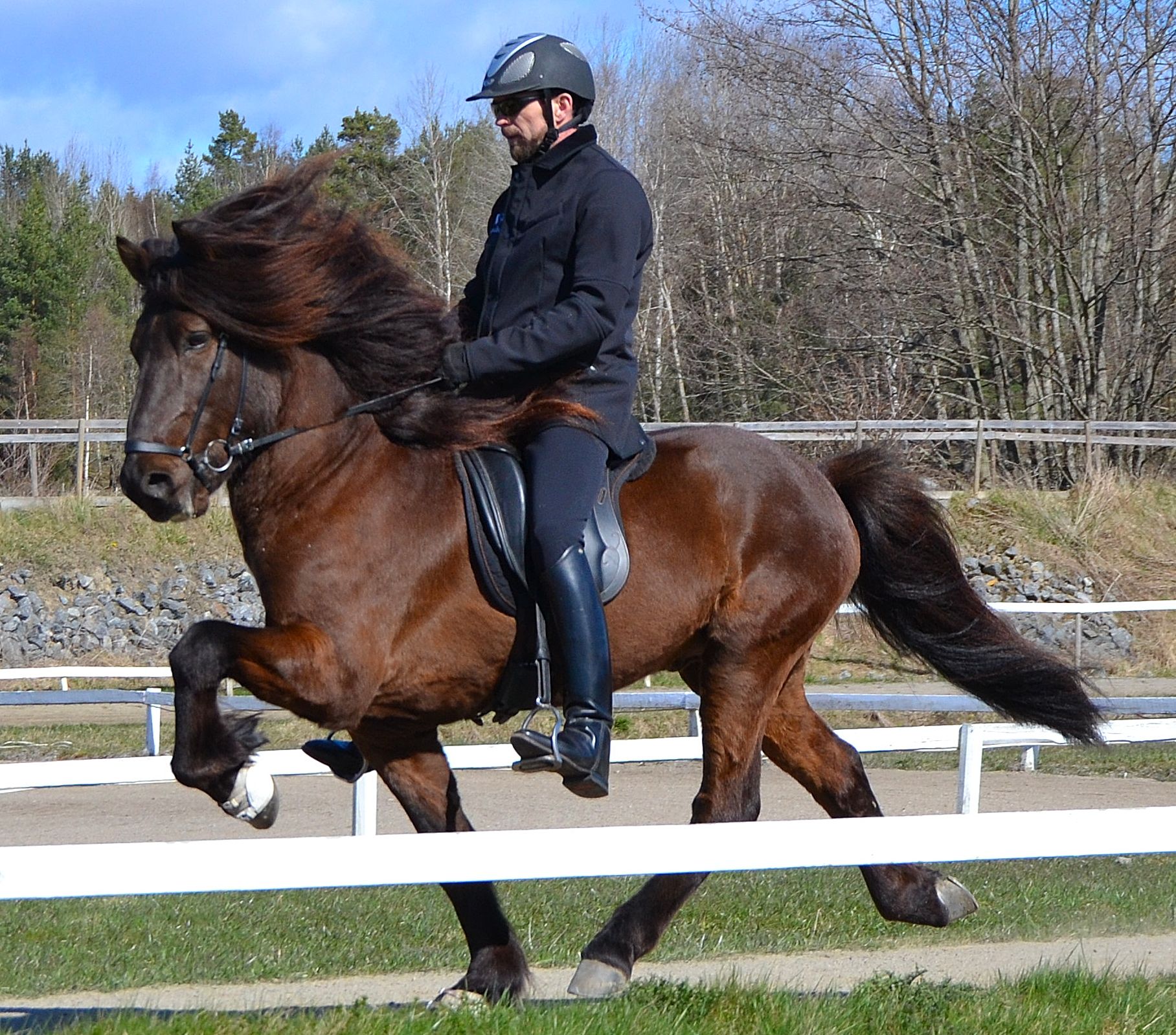 Förmiddagen var kall och blåsig och många ekipage påverkades nog av det, det var lite spänt överlag. Ovanligt många avbrutna visningar och lite andra avhopp från banan. Men så bröt solen fram efter lunch och alla började tina upp, prestationerna lyfte och vi kunde äntligen börja dela ut ett antal SM-kvalpoäng. Underbart att få se den här killen göra säsongspremiär. Han blir allt mäktigare, vår fina Divar och för första gången i mitt ännu relativt korta domarliv fick jag sätta totalpoäng på över 7 (jag är så tacksam över att få förmånen att döma så mycket regionalt som jag får, det är enormt utvecklande som domare att få stretcha poängen över hela skalan). Det var roligt bara det och ännu roligare när det var till det här underbara ekipaget! Att som femgångshäst göra 6,93 i fyrgång är imponerande. Och 7,10 i T1. Betänk då att passen är mycket stark… det känns spännande inför framtiden och kommande femgångsstarter. Han är extremt proffsigt avlad, matchad och tränad den här hästen. Och ännu inte färdig…, vilken spännande tid vi har framför oss.