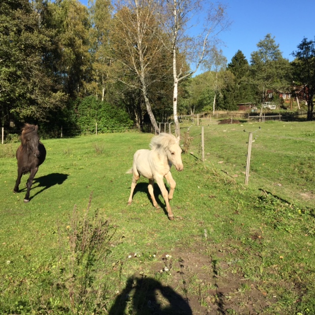 Nu är hösten som vackrast och färgprakten i solen framkallar i det närmaste religiösa känslor i mig, som är en skogsmulle ut i fingerspetsarna. Inte på det viset att jag samlar svamp och och bär, jag kan knappt skilja kantarell från champinjon (jo kanske just det, men där går min kompetensgräns), men jag är en visuell person och jag tar in och värderar dofter, färger, känsla och ljus. Jag gillar det höga, klara och friska. Det enda jag inte gillar såhär års är vimsande älgar, leriga stigar och det annalkande mörkret. Hästarna verkar ha återhämtat sig från sin pälssättning och är pigga, glada och arbetsvilliga. Egentligen har jag sinnesjukt mycket att göra med två gigantiska projekt dumpade i mitt knä, samt lite övrigt lull-lull som jag dras in i av rena fartvinden, vilket alltid händer på stora bolag. Ett litet bonusprojekt som jag deltar i, på tid som inte finns, är stallprodukter – strö, stolpar och ridhusflis exempelvis. Det är ju rena nöjet att hålla på med måste jag erkänna. Snart kan ni därför sannolikt köpa fina, miljövänligt producerade stallströprodukter med en islandshäst ni kanske känner igen på förpackningen :). Just nu väljer jag mellan två stora personligheter.