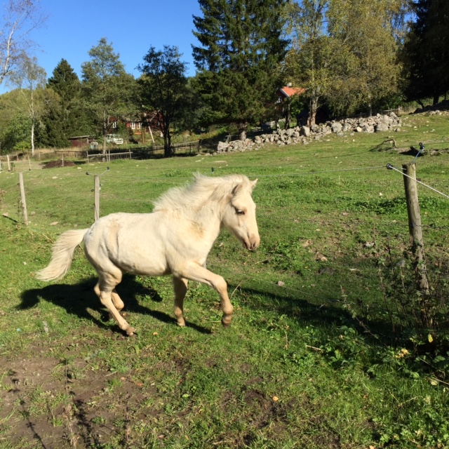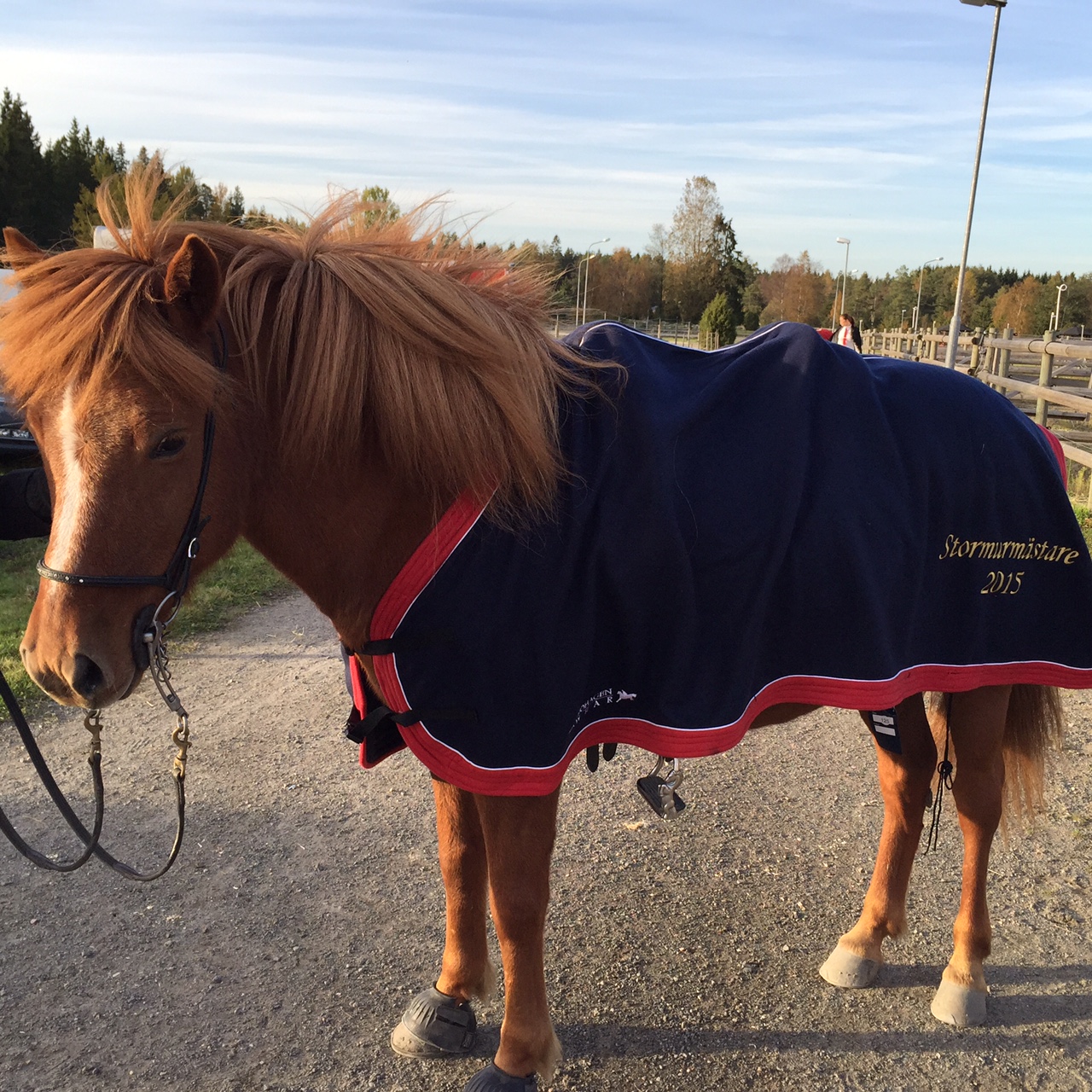 Det var en lång inledning till att jag egentligen inte alls har tid att rida. Ändå rider jag regelbundet och ofta. Är det någon gång jag bara måste rida så är det när jag har så hysteriskt mycket att jag inte vet var jag ska börja ibland. Ridningen rensar hjärnan, ger ny energi (makalöst vilken skön känsla det är att rida ett par hästar) och håller igång den gamla kroppen (om den nu inte skulle vara igång tillräckligt av fordringar, mockningar, slit och släp). Snart går vi in i viloperiod, ja inte jag då av ovan nämnda skäl, men hästarna i omgångar. Det kan vara bra, då tjejerna inte är lika ridfrekventa som jag för tillfället och jag har lite körigt att hålla igång fyra pållar själv. Först ut är Lakkrís som har utvecklats fint, börjar tölta ganska säkert (långsamt), utan att förlora takt och steglängd i traven och med bibehållen fin överlinje. Han har också lärt sig sidförande och börjar bygga upp kroppen till att bli ridhäst (med mjölkmage…). Det är ganska lagom att ställa av honom i mitten av november, då vi har hunnit med en kurs för Fredrik Rydström och något besök nere på Lindnäs. Snurre står också på tur omkring samma tid. Han har dragits med en överansträngning i ett bakknä efter vår omkullridning, som vi haft under uppsikt och behandling genom massage. Han fick starta Stormurmästerskapet, med massörens godkännande, värre än så är han inte, men vi såg ju att han var i obalans bak på ett sätt som han inte brukar vara (inte bara att han var tjock och otränad). Han slog upp två gånger i korsgalopp i läggningarna och det finns inte på hans repetoar egentligen, det har aldrig hänt förut. Han är stensäker vanligtvis – slår han upp så är det i ren galopp, inte i kors. Så visst är han påverkad, tack och lov inte i sitt gamla skadeknä, utan i det andra. Nu rids han enbart i trav och skritt fram till nästa behandling om ett par veckor. Efter det ska han vila en månad. De andra två rödingarna, Klár och Bliki kör vi på ett tag till, tills gråheten tar musten och lusten ur ridningen. Klár bygger vi kondition på nu och jag är så tacksam för ridvägarna här. De är outstanding och ändå har vi bara utforskat en bråkdel ännu. En lång, sandbelagd raksträcka har vi nu hittat bland alla vackra skogsstigar, där vi kan bygga upp allt möjligt på hästarna – pass, tölt, galopp, you name it. Vi ser också hur den förgrenar sig åt en massa håll, så när andan faller på ska vi ut och botanisera vidare i skogarna och upptäcka ännu mer. Bliki jobbas bara vidare där han befinner sig, han ska sitta lite mer på baken och han ska vara säkrare i formen. Konditionsmässigt är han fin, takten är ren och mycket är på plats. Han är egentligen den roligaste av dem på så sätt, den man kan kräva mest av (med tanke på att Snurre är lite skadad och heller inte är lika tjänstvillig som Bliki). Det är onekligen lyxigt att ha ett gäng hästar på så olika nivåer, där man kan njuta av de stadier de alla befinner sig i. Efter en längre tur väljer vi gärna att ta den hästen som ansträngt sig mycket som handhäst dagen efter, så att han får röra sig, men utan ryttarbelastning. Det funkar fint här då vi har vägar som tillåter handhästridning, dvs är breda nog för två eller tre hästar. Dit har jag inte kommit än, men jag har nyss beställt en riktig handhästgjord, så vem vet – snart kanske jag tar ut hela flocken samtidigt…