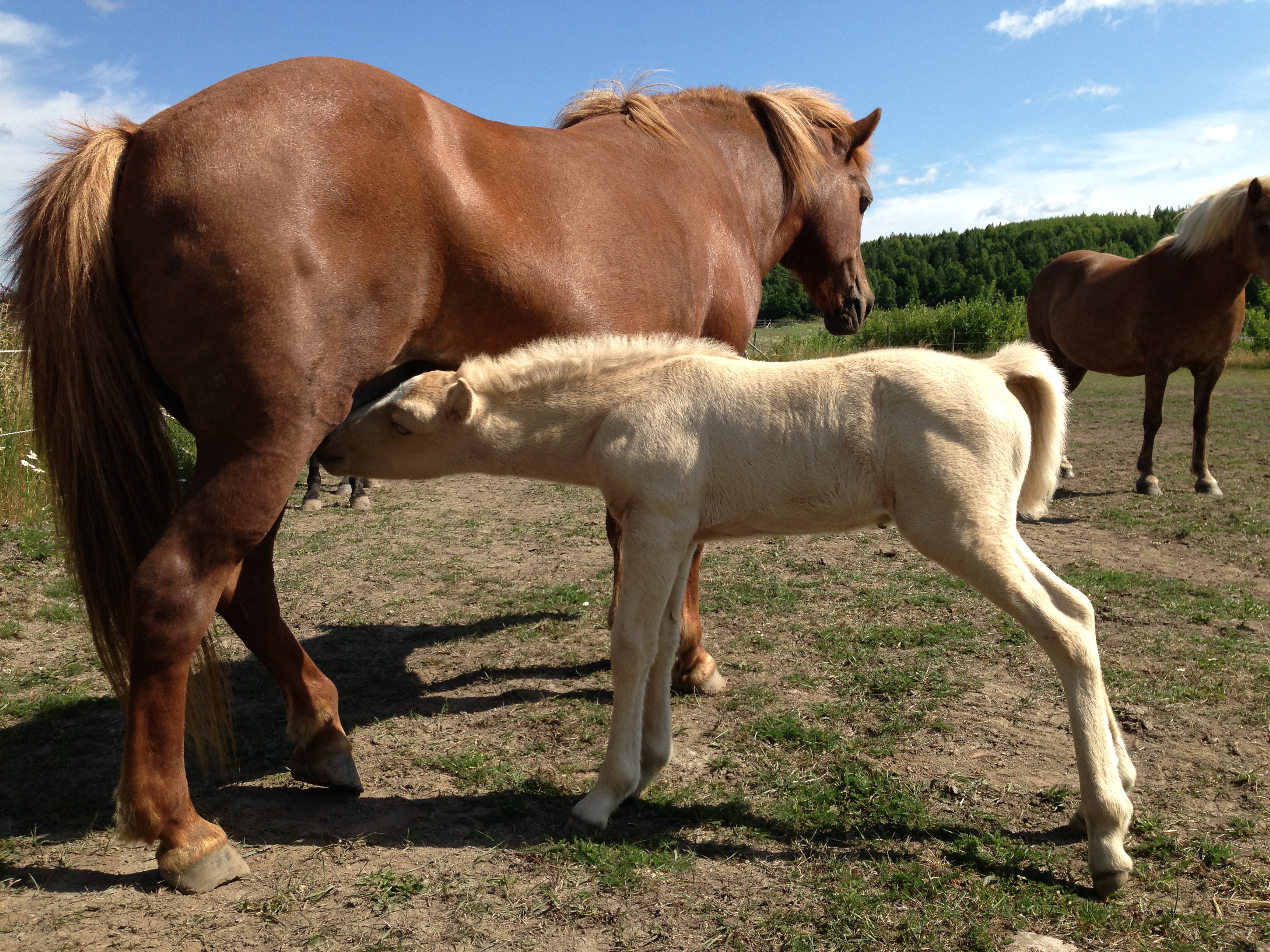 Sóley är efter Svalur (ELIT) och har en andra klass bedömning på totalt 7,70 från det att hon var nyinriden (visad efter endast 4 månaders ridning). Hon har sammanlagt 7 avkommor, varav vi äger 3 i dagsläget – Sólfari (efter Dropi, född ´92), Gandur/Snurre (efter Fákur, född ´00), Bliki (efter Ìsar, född ´06), Tígn (efter Dökkvi, född ´07), Míst (efter Skýr, född ´09), Lakkrís (efter Prins, född ´11) och Leiri (efter Divar, född ´13). Sóley var fantastisk på att släppa igenom hingsten, tillsammans med det bästa från sig själv: samarbetsviljan.